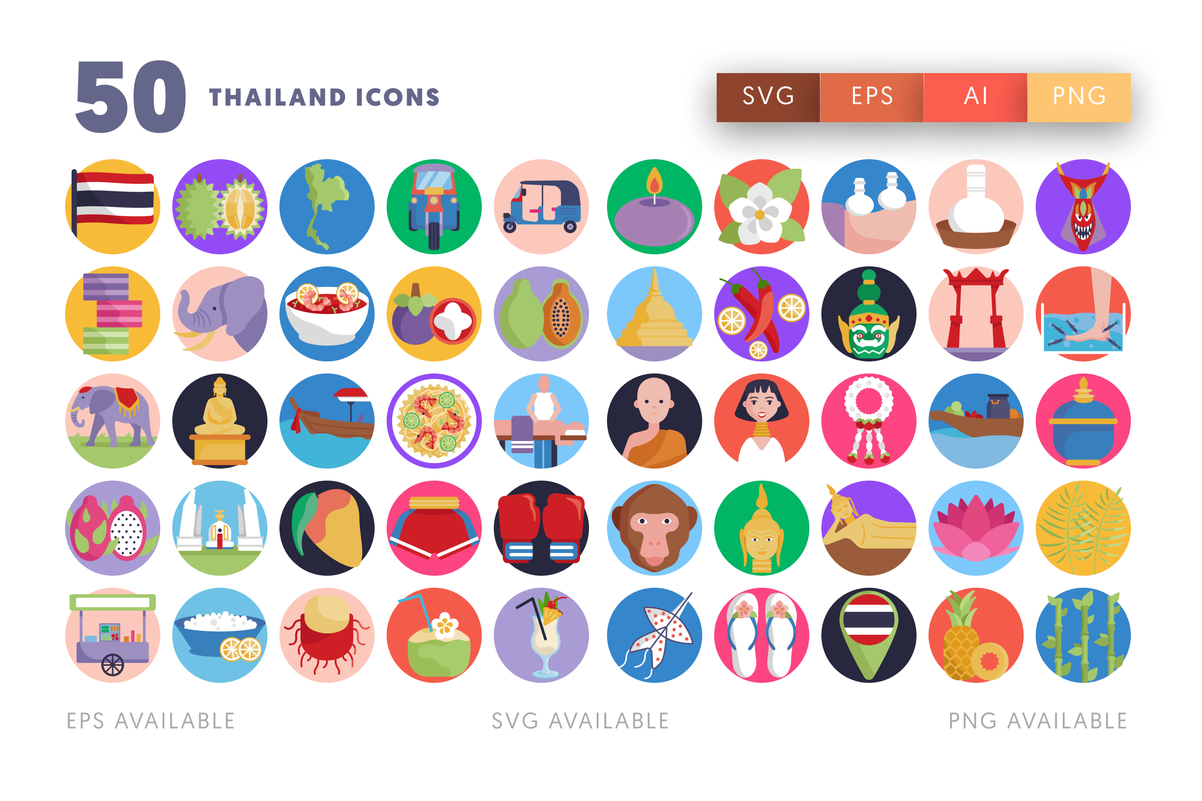 50 Thailand Icons – Modern Travel & Culture Icon Pack