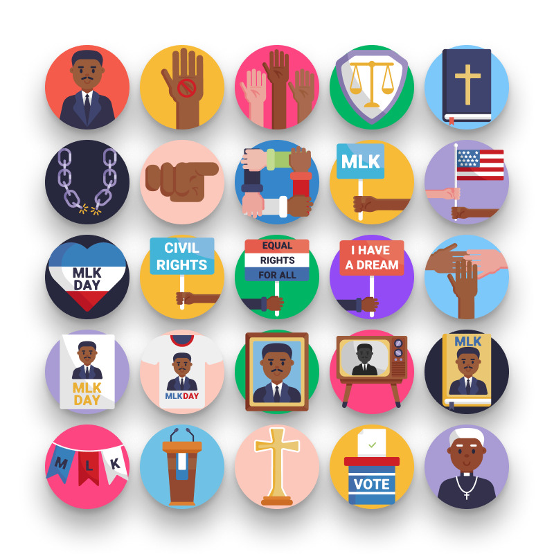 50 Martin Luther King Icons – Inspirational Civil Rights Icon Set