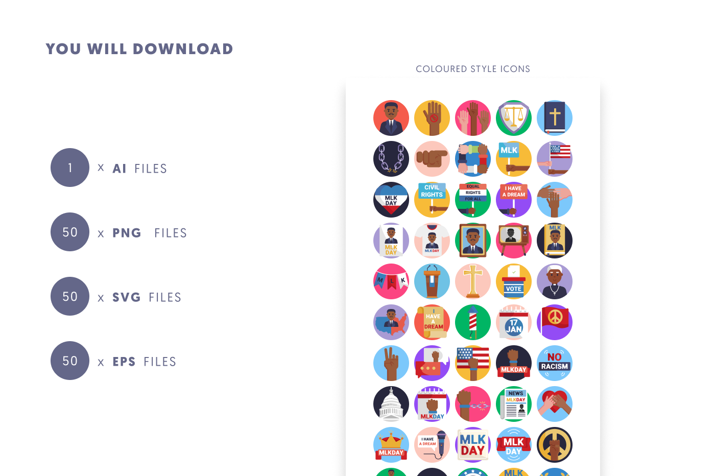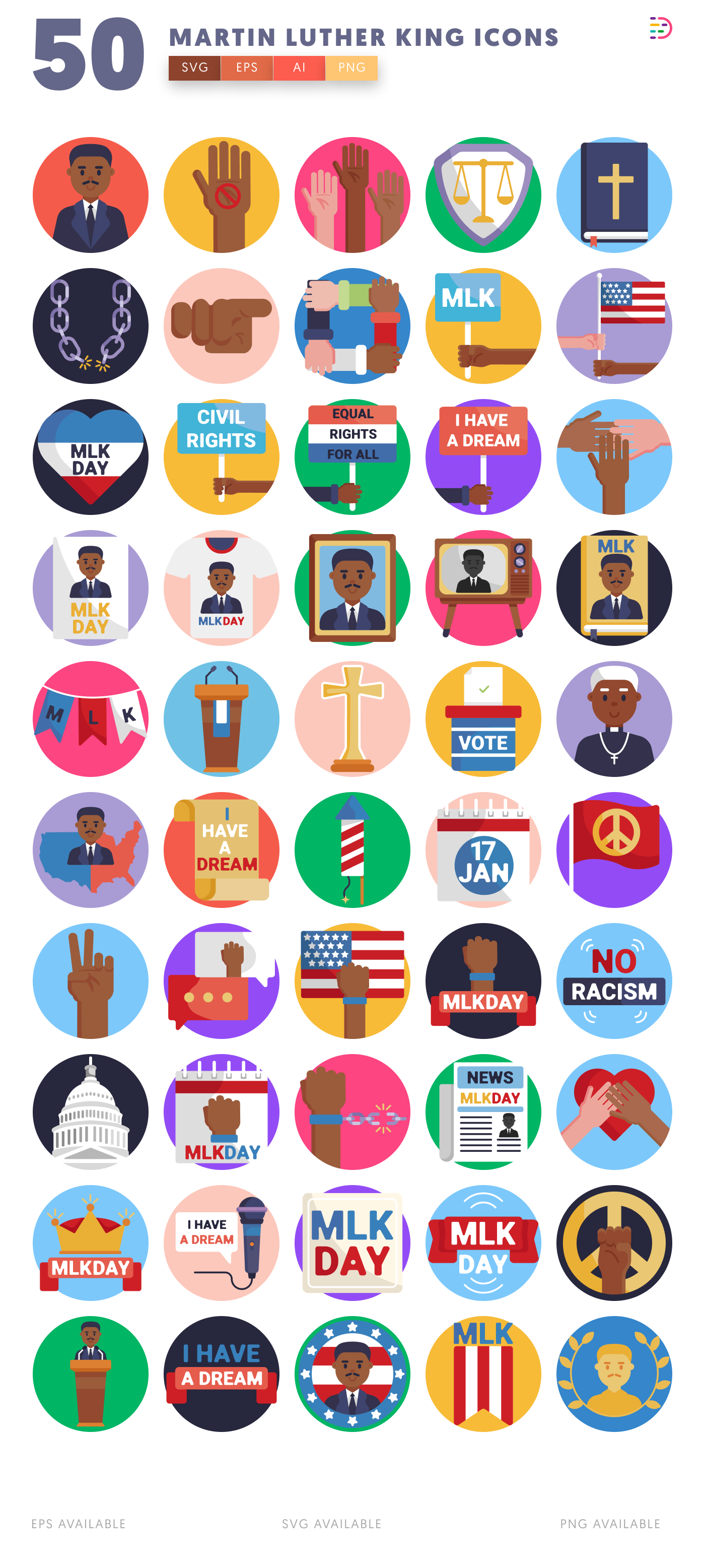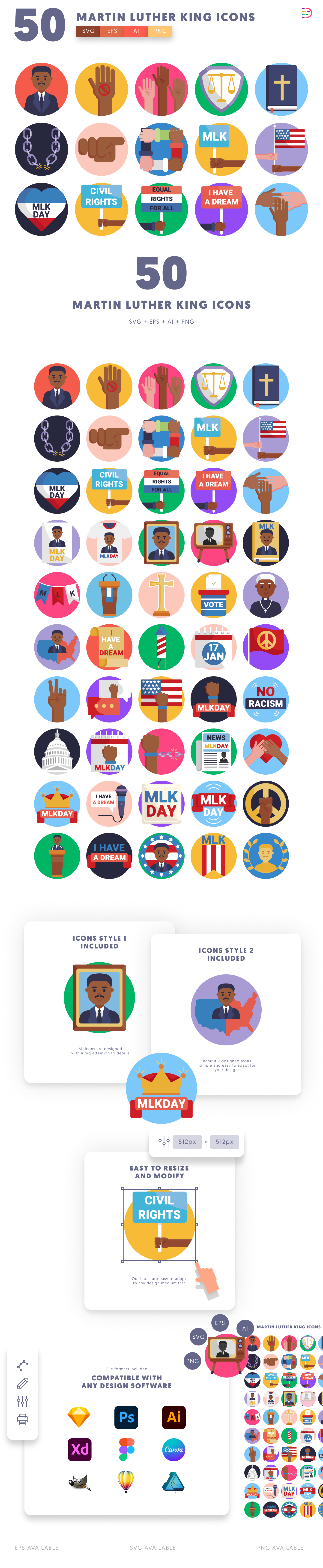 50 Martin Luther King Icons – Inspirational Civil Rights Icon Set