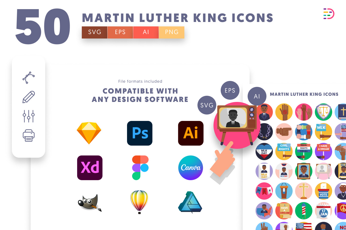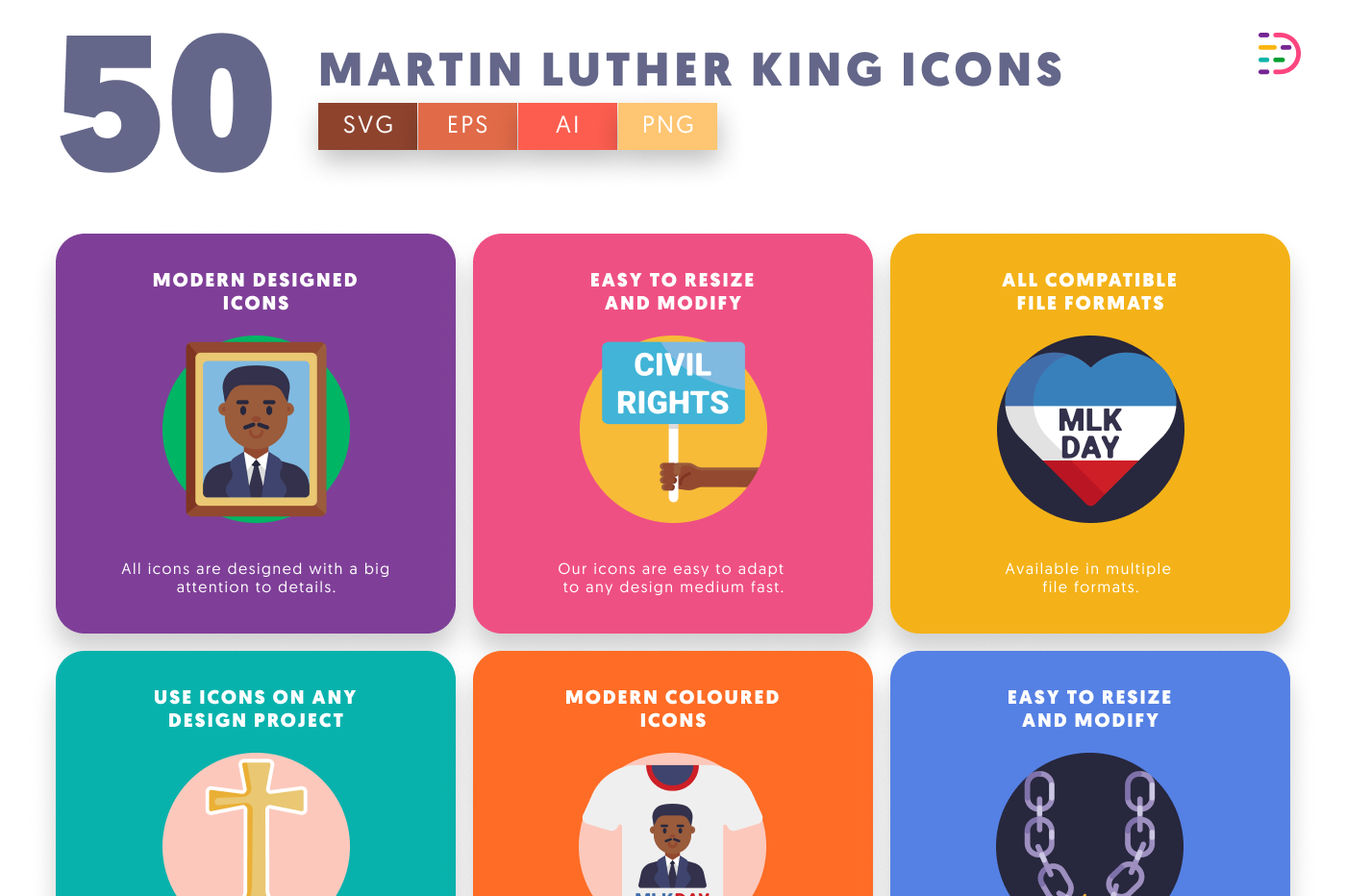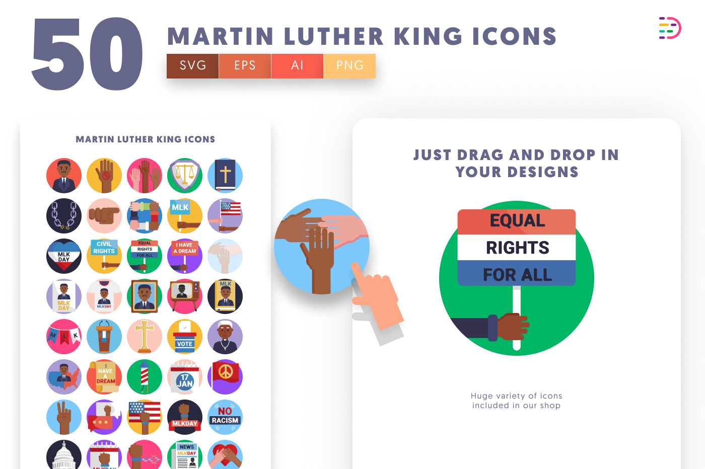 50 Martin Luther King Icons – Inspirational Civil Rights Icon Set