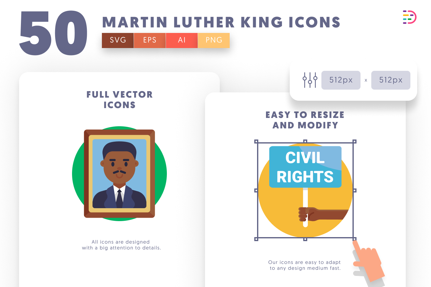 – 512 x 512 px icons easy to resize and adapt to your designs