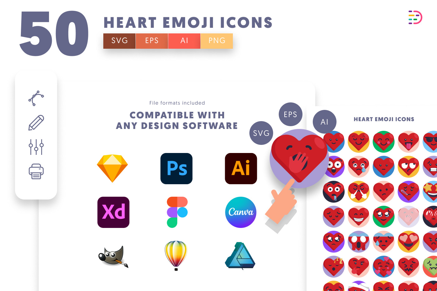 Each icon is clean, scalable, and optimized for both digital and print use. Whether you’re designing a dating app, Valentine’s campaign, sticker pack, or social media content, this heart emoji icon pack gives you flexibility and consistency across platforms.