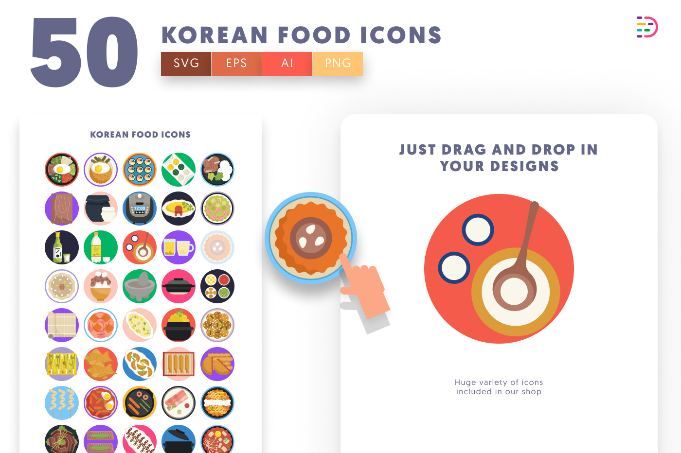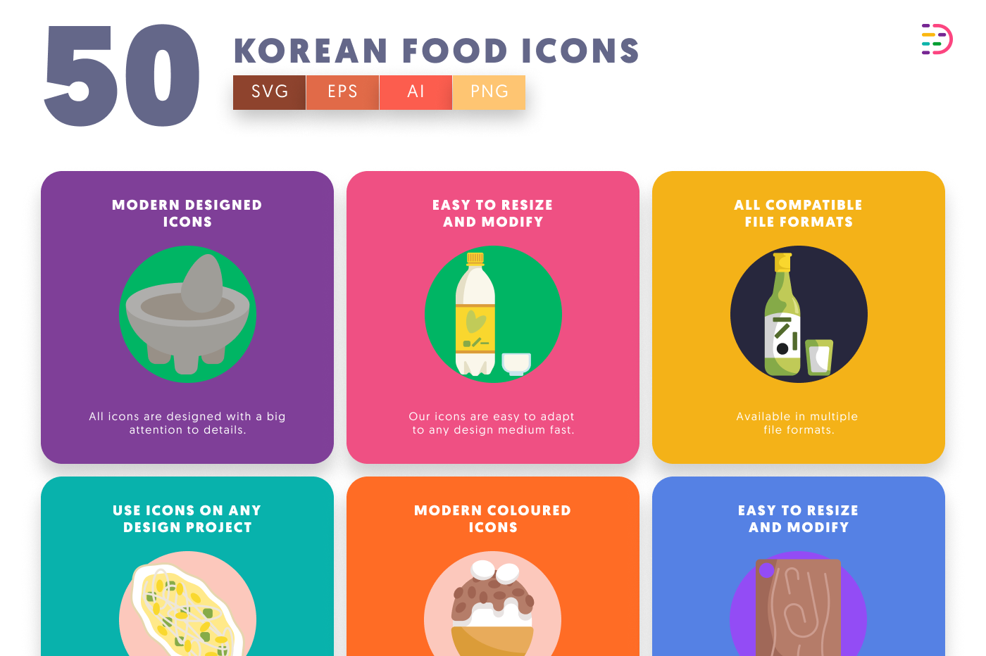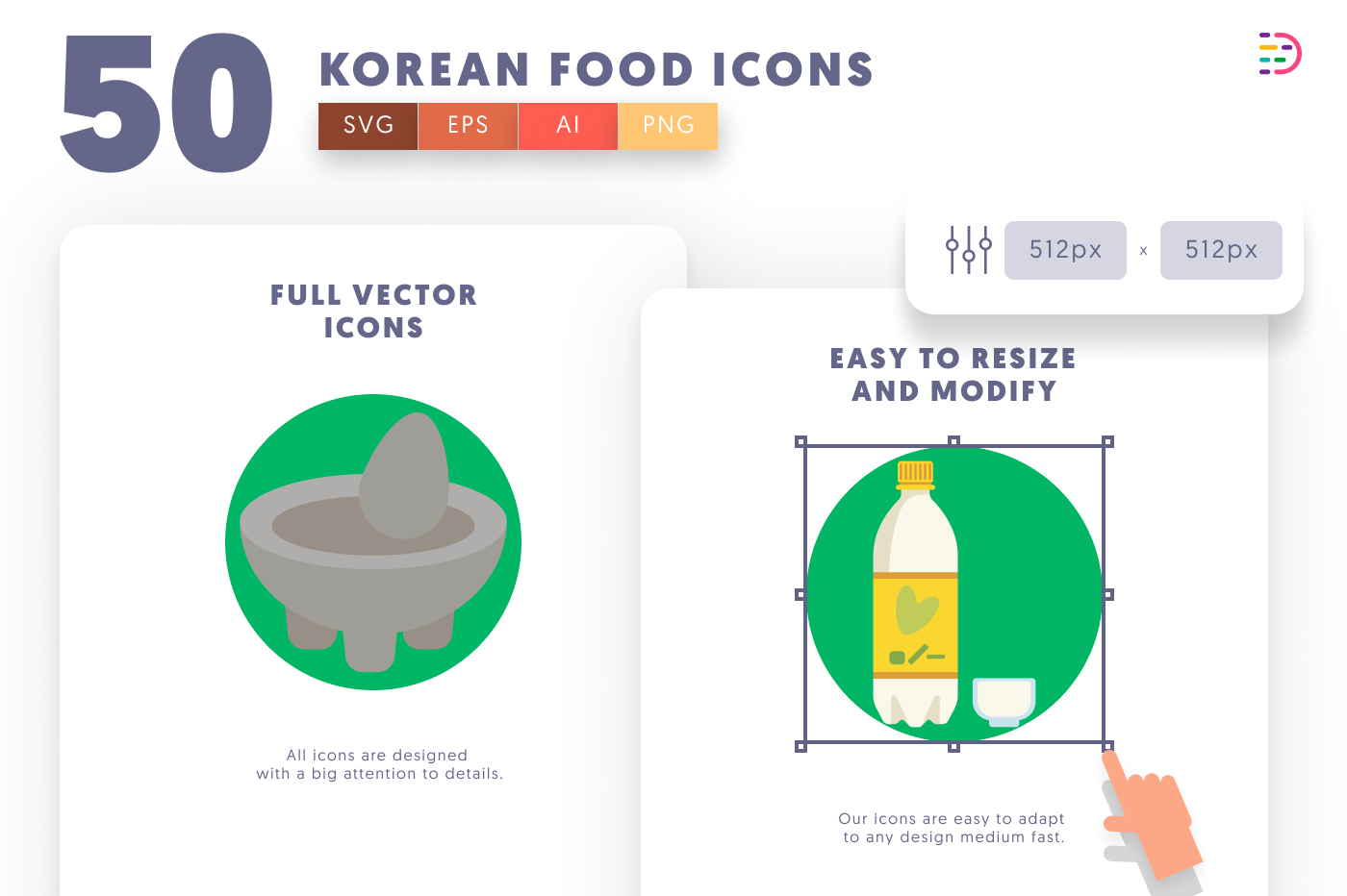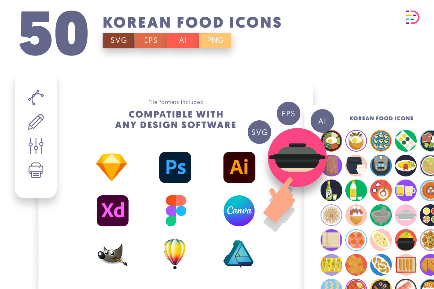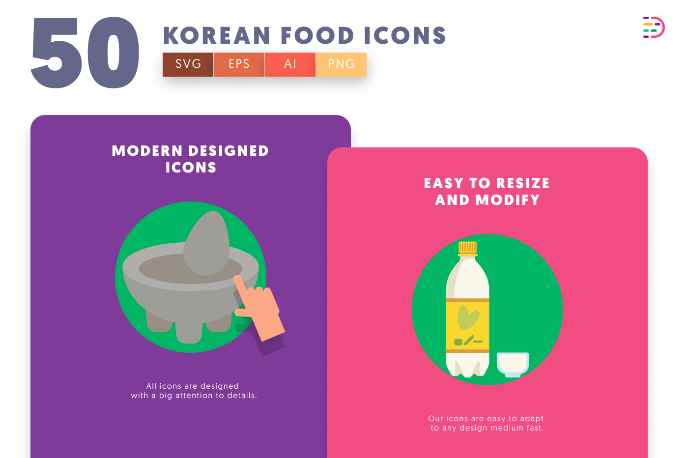 50 Korean Food Icons – Modern Asian Cuisine Icon Pack