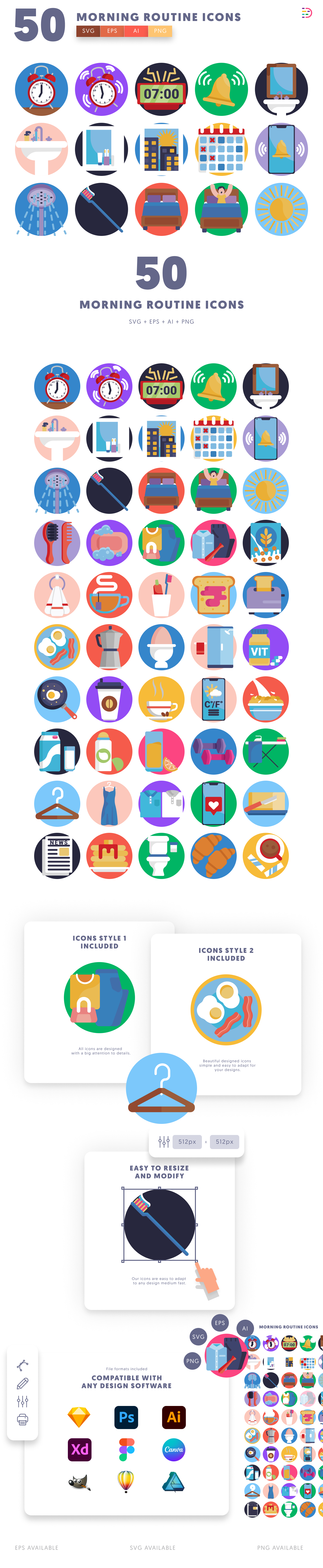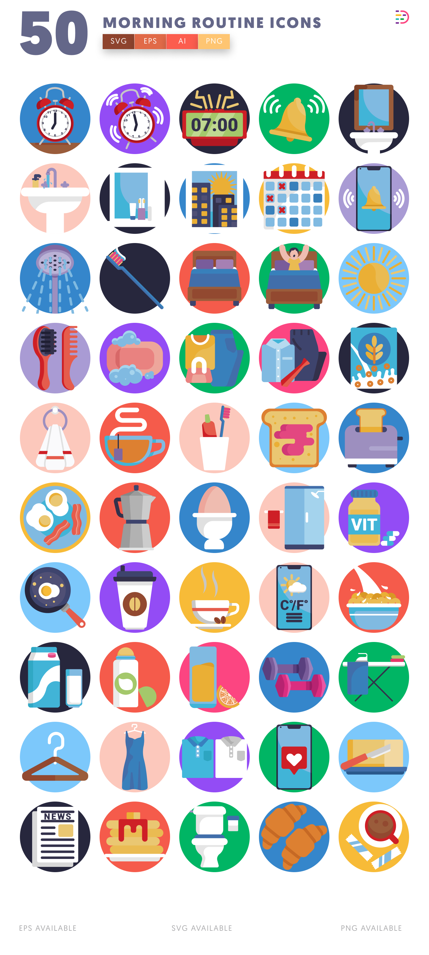 Start every project with confidence using the 50-Morning Routine-Icons — a clean, modern icon set designed to bring clarity and energy to your visuals. Perfect for UI/UX designers, branding projects, mobile apps, planners, wellness platforms, social media graphics, and digital products.