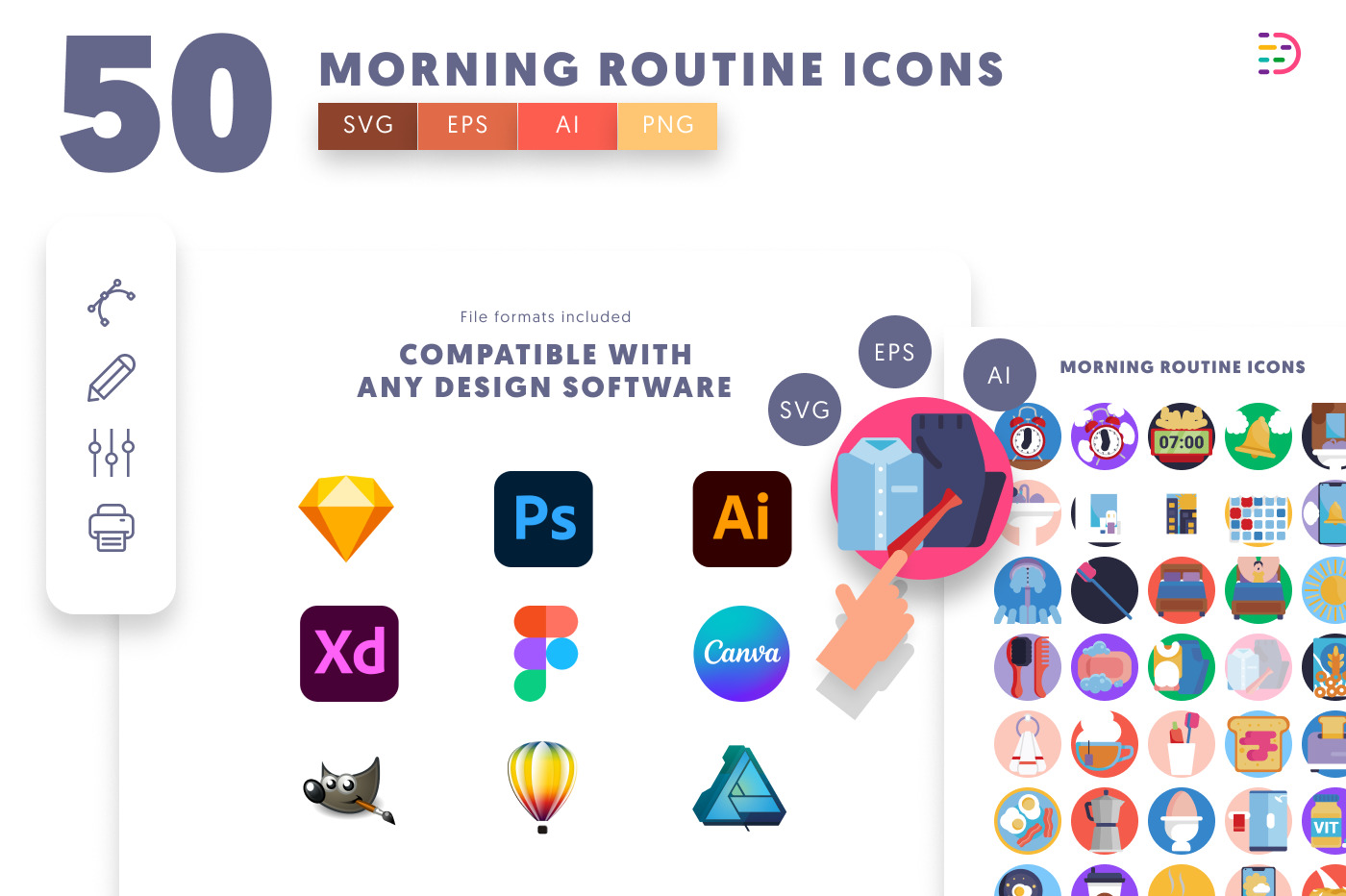 Each icon is crafted with consistent line weights, smooth curves, and a balanced visual style, helping you create polished, professional designs. From coffee cups and alarms to skincare, yoga, and productivity essentials, this pack gives you all the morning-moment symbols you need in one complete collection.