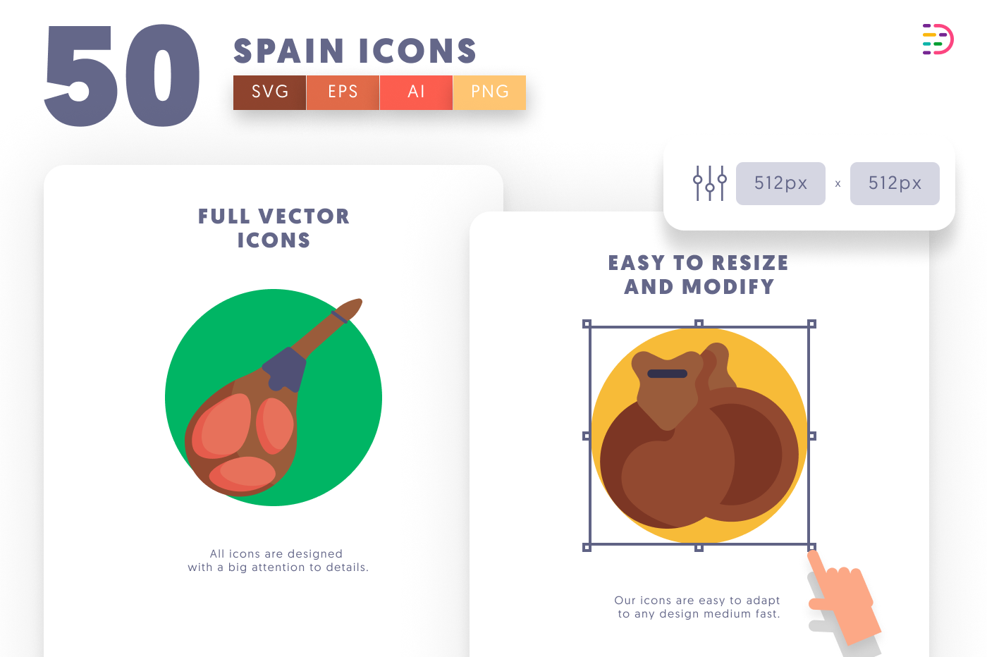 – 512 x 512 px icons easy to resize and adapt to your designs