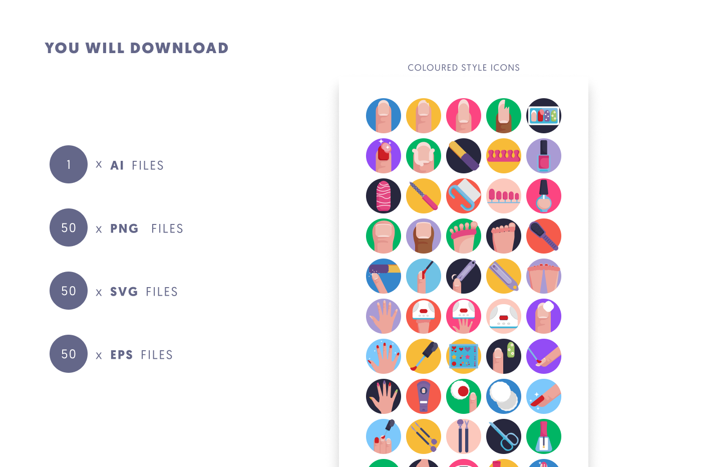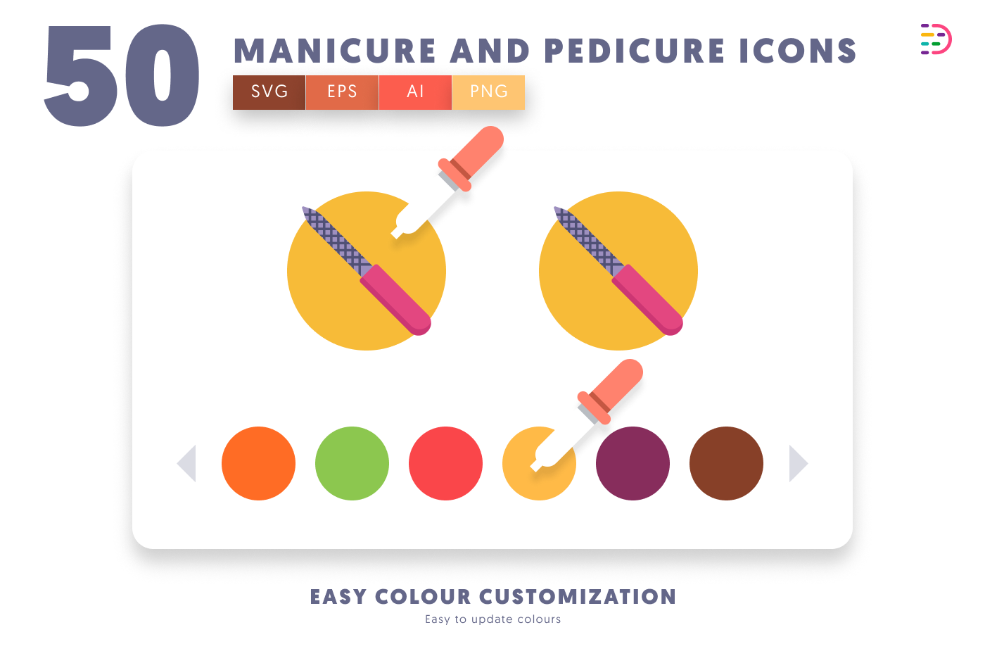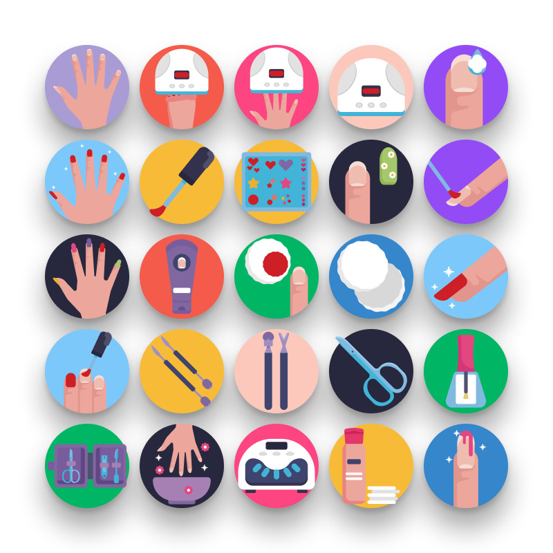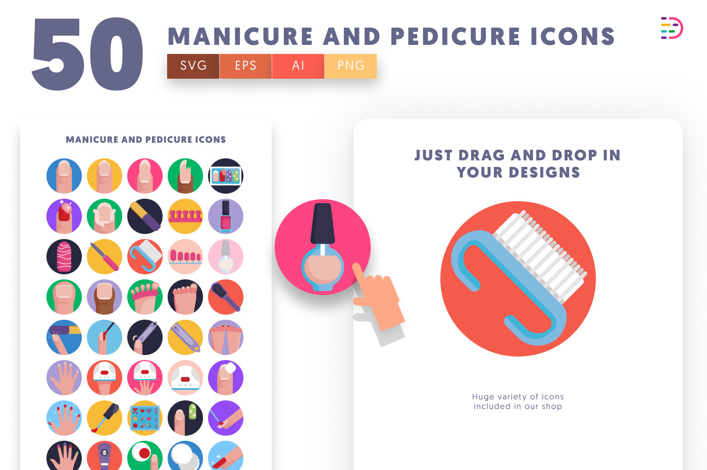 Elevate your beauty and nail care projects with the 50-Manicure and Pedicure Icons set. This versatile collection features sleek, modern icons representing nail polish, nail tools, foot care, and spa treatments. Perfect for websites, apps, social media, and print designs, these icons will help you create visually appealing content that attracts attention and enhances your brand. Ideal for beauty salons, nail artists, and wellness professionals looking to add a professional touch to their projects.