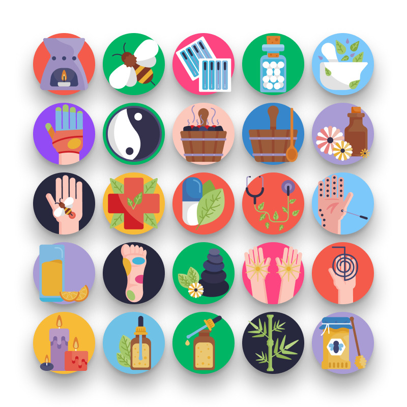 Keywords naturally included: alternative medicine icons, wellness icons, holistic health icons, herbal icons, yoga icons, acupuncture icons, healthcare icon set.