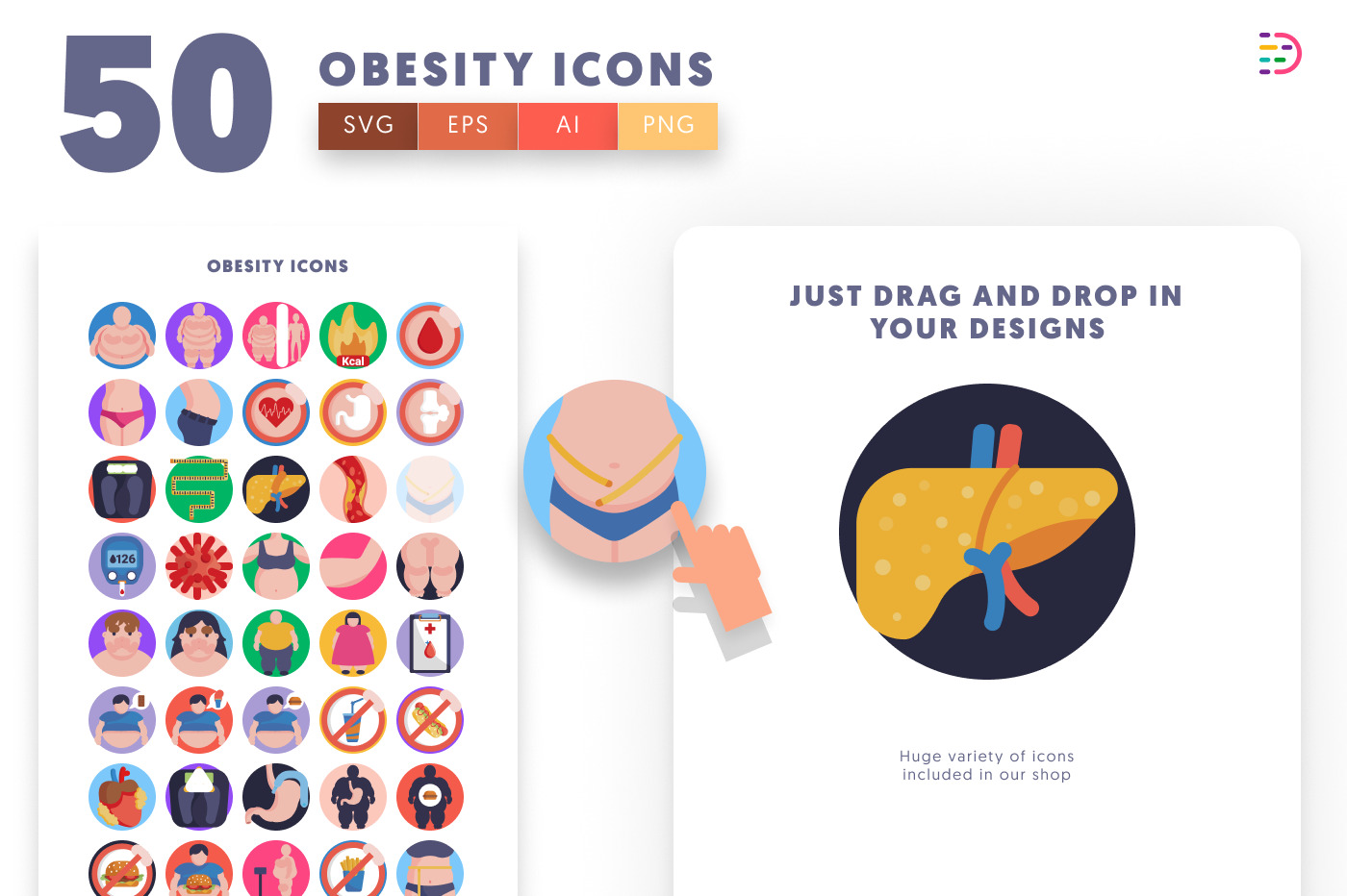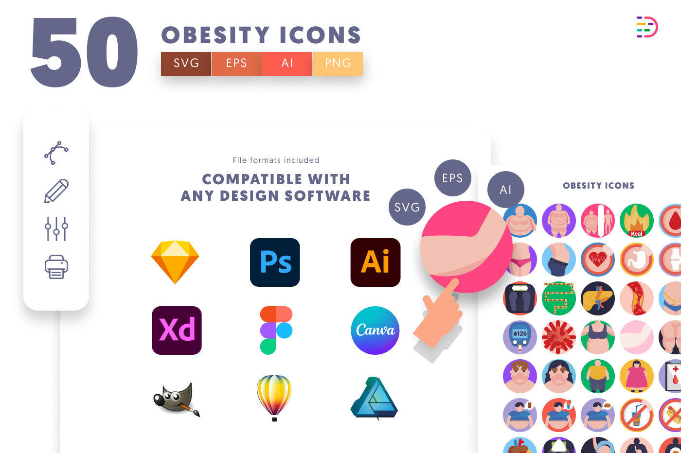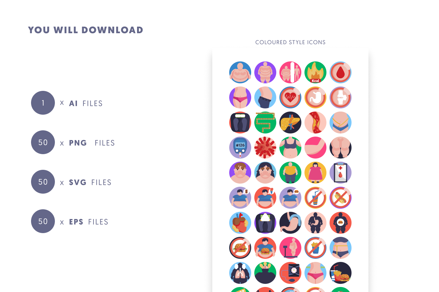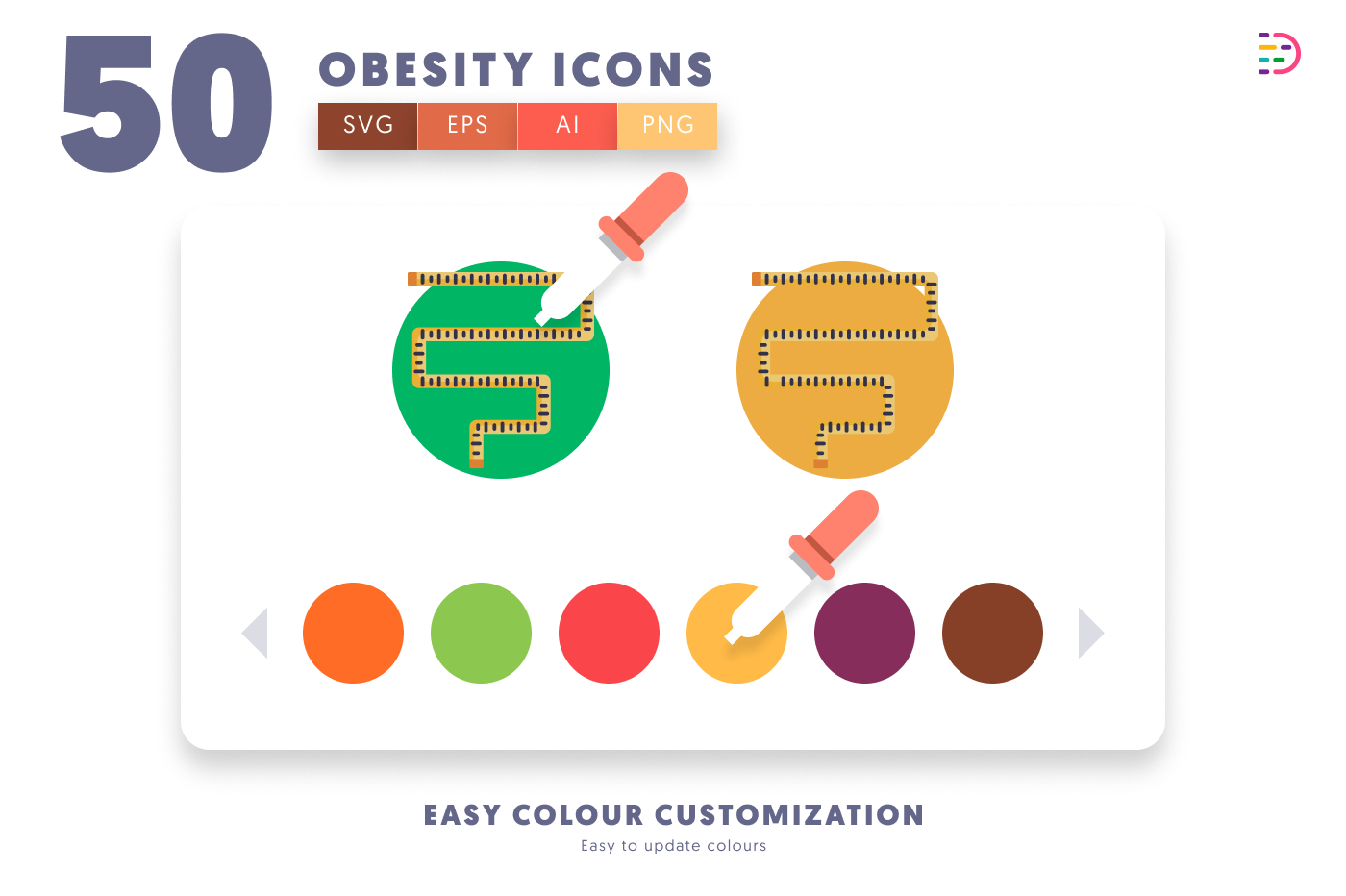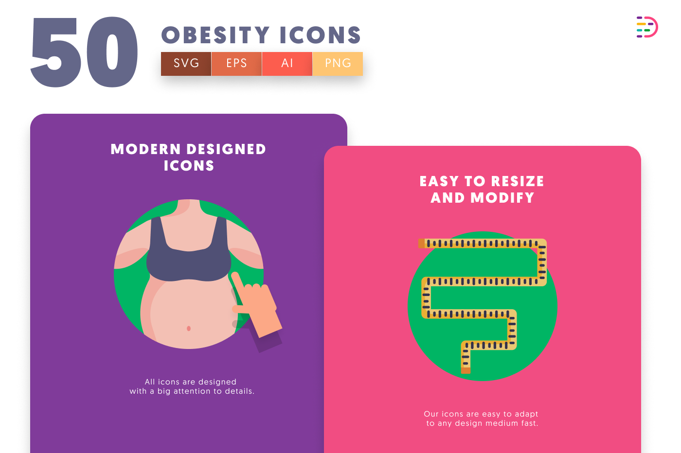 Enhance your medical, fitness, and wellness designs with the 50 Obesity Icons set. This professionally designed collection illustrates key concepts related to obesity, nutrition, exercise, and healthcare. Ideal for use in apps, websites, infographics, and educational materials, these vector icons are clean, modern, and easy to customize. Perfect for health professionals, designers, and educators aiming to promote awareness and understanding of obesity and its impacts.