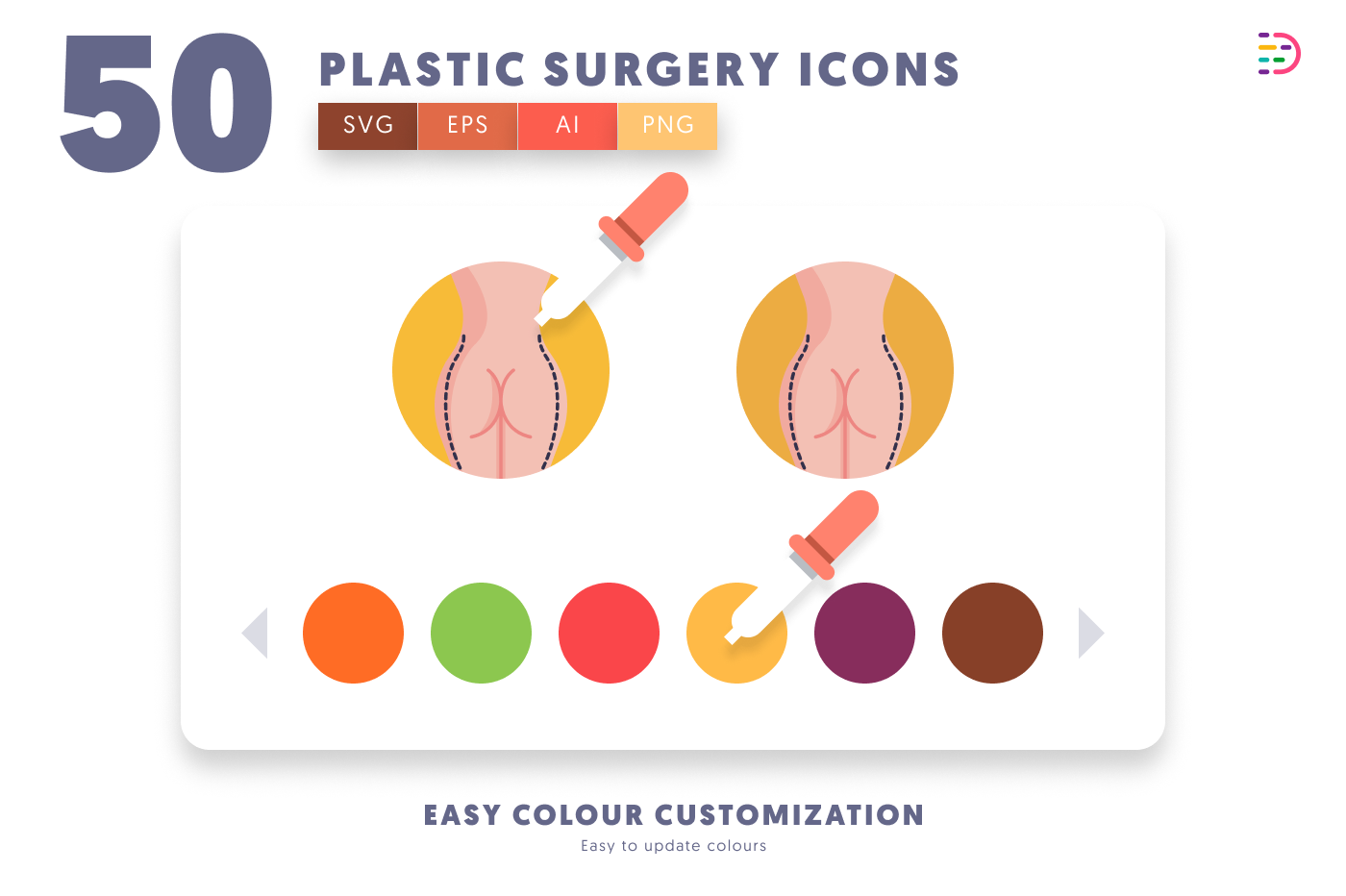 Enhance your medical and beauty-related projects with our 50 Plastic Surgery Icons set – a comprehensive collection of high-quality, vector-based line icons designed specifically for the plastic and cosmetic surgery field. Perfect for clinics, websites, mobile apps, presentations, brochures, and infographics, these icons visually represent a wide range of procedures and tools used in aesthetic medicine.