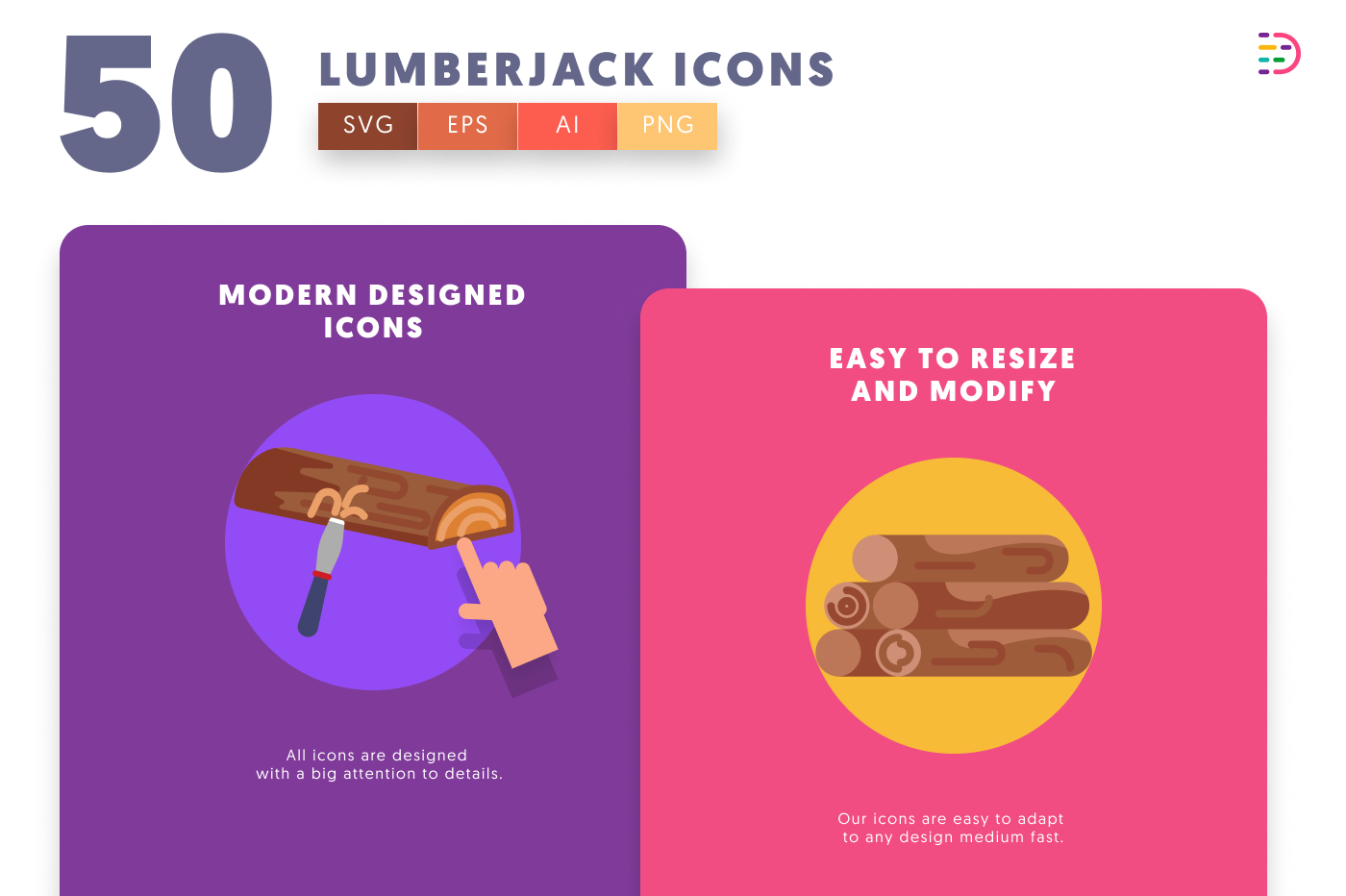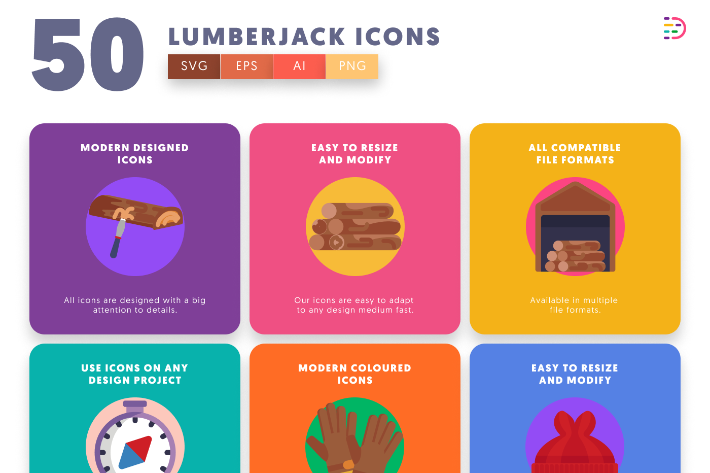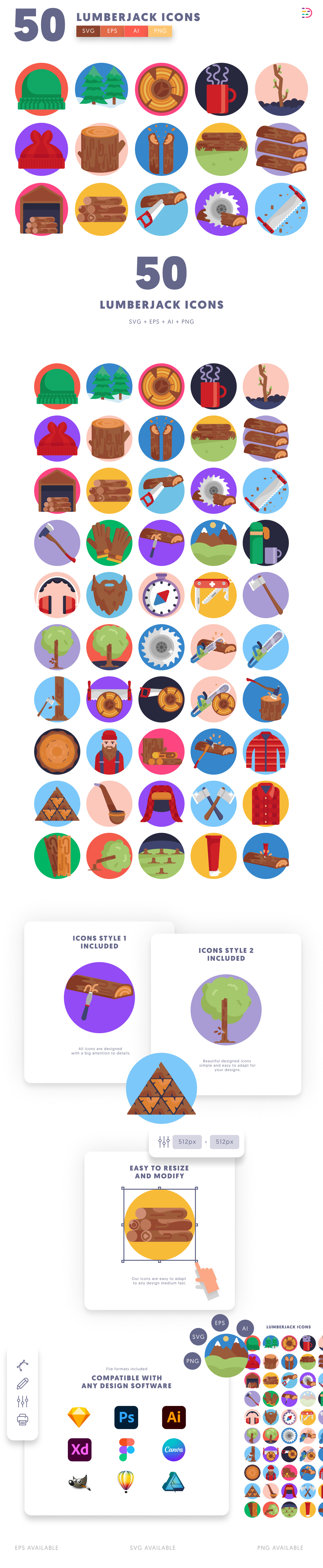 Unleash the rugged charm of the forest with our 50-Lumberjack Icons set. Perfect for designers, illustrators, and outdoor enthusiasts, this collection features detailed, high-quality icons of axes, saws, beards, flannels, and more. Ideal for web design, apps, posters, or any project that needs a rustic, lumberjack-inspired touch. Each icon is crafted for clarity and versatility, ensuring your designs stand out.