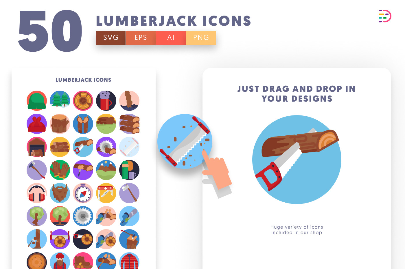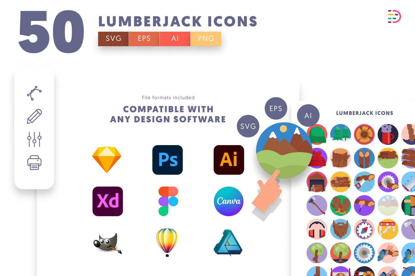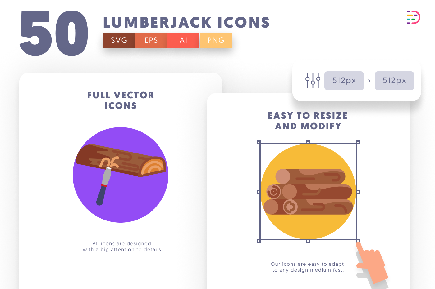 Unleash the rugged charm of the forest with our 50-Lumberjack Icons set. Perfect for designers, illustrators, and outdoor enthusiasts, this collection features detailed, high-quality icons of axes, saws, beards, flannels, and more. Ideal for web design, apps, posters, or any project that needs a rustic, lumberjack-inspired touch. Each icon is crafted for clarity and versatility, ensuring your designs stand out.