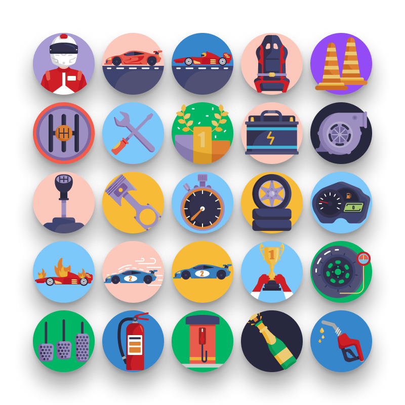 Each icon is designed with precision and consistency, making it easy to integrate into both digital and print projects. Whether you’re working on a racing app, automotive website, or gaming interface, these icons will add a dynamic and professional touch.