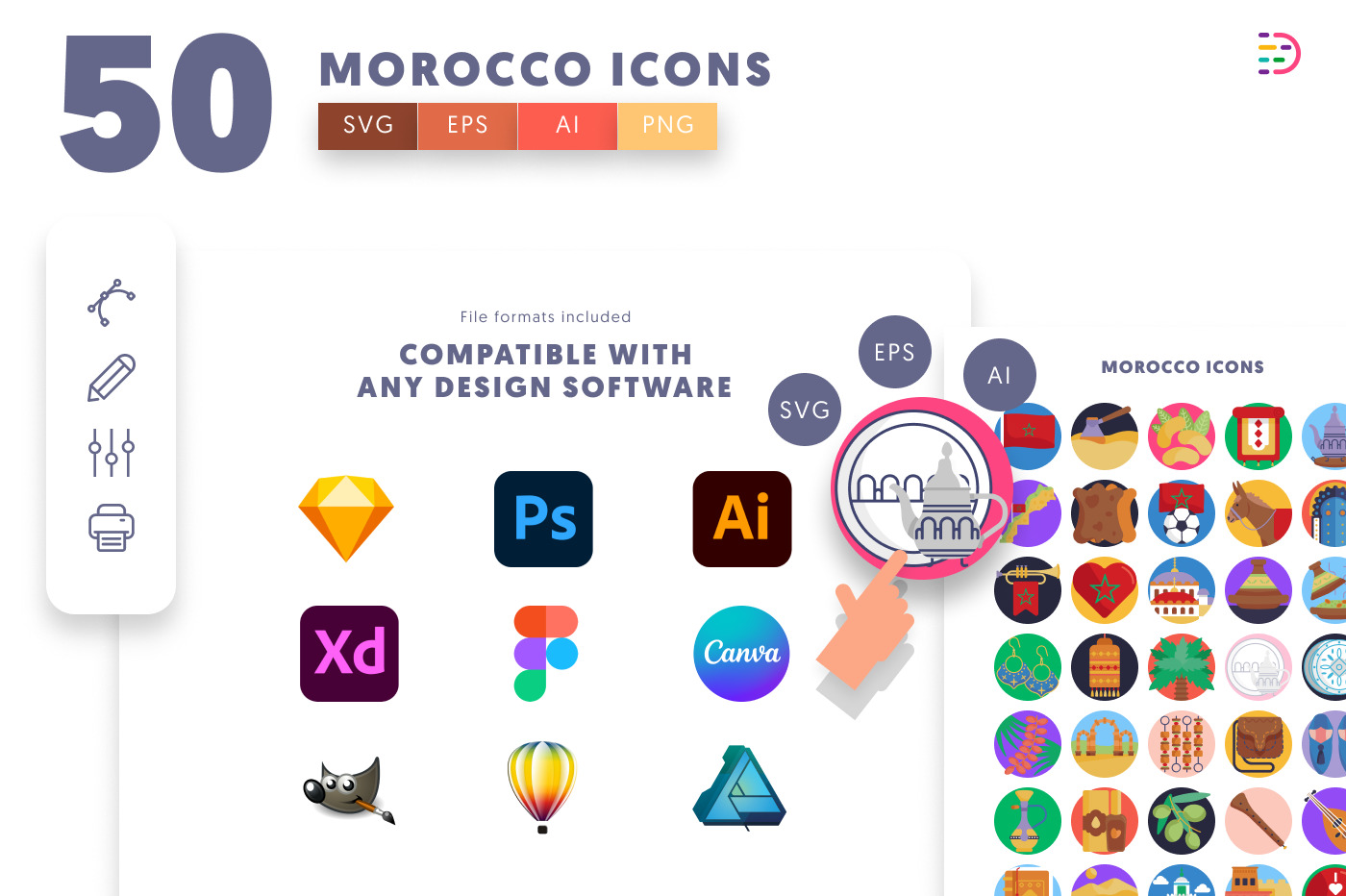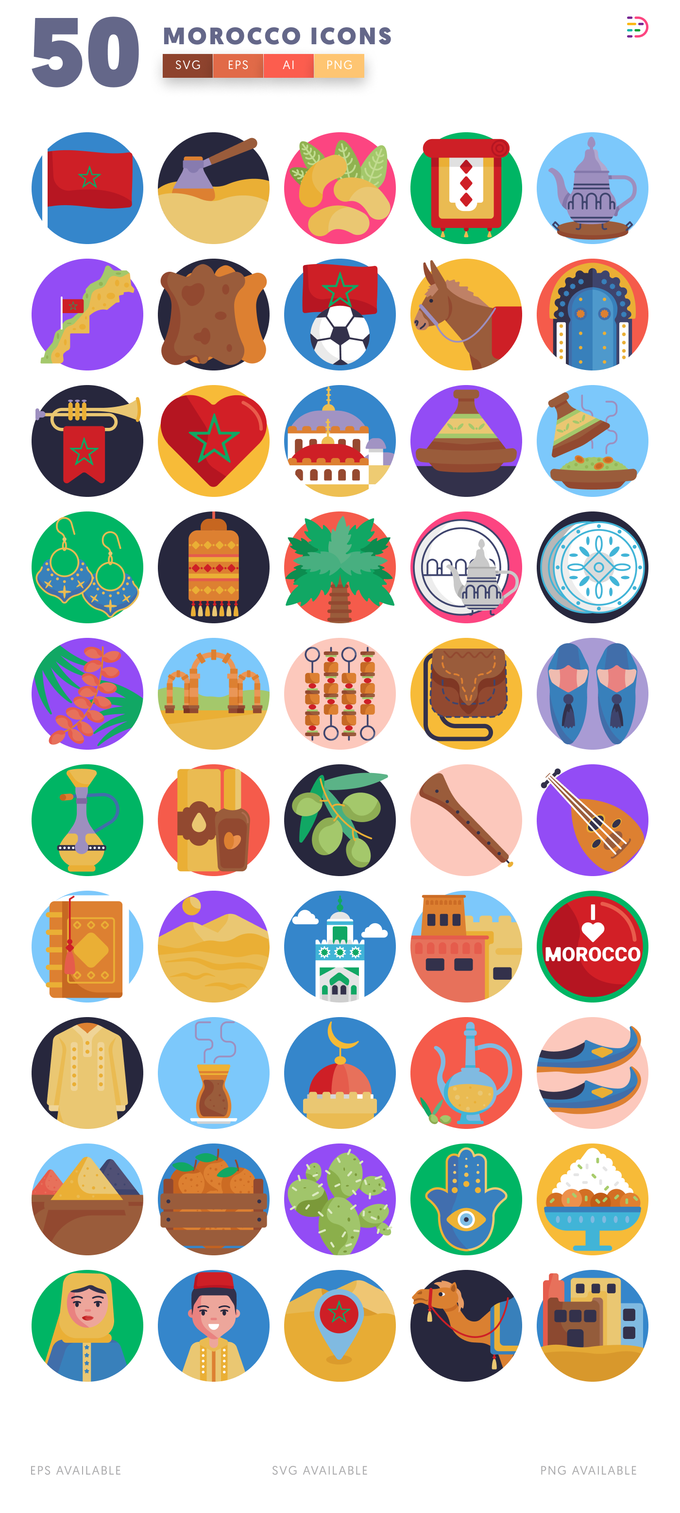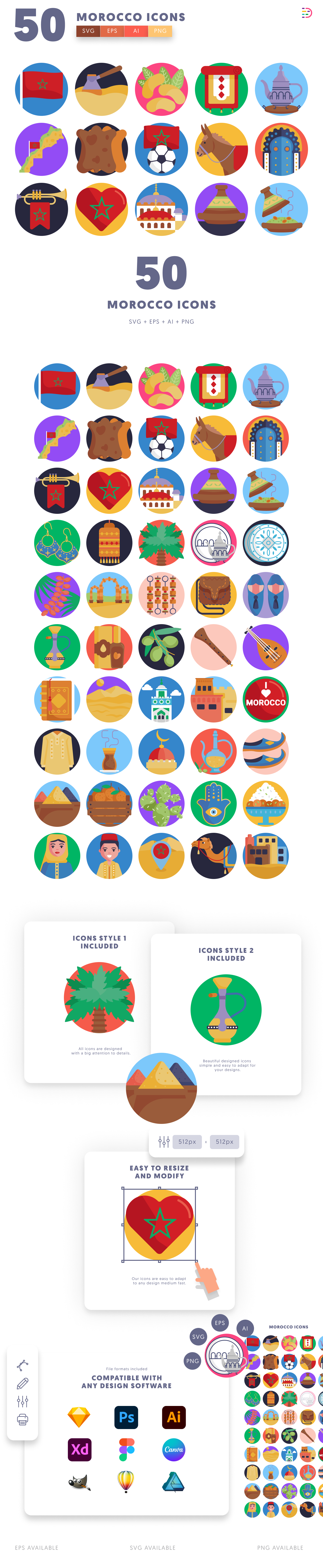 50 Morocco Icons set includes: