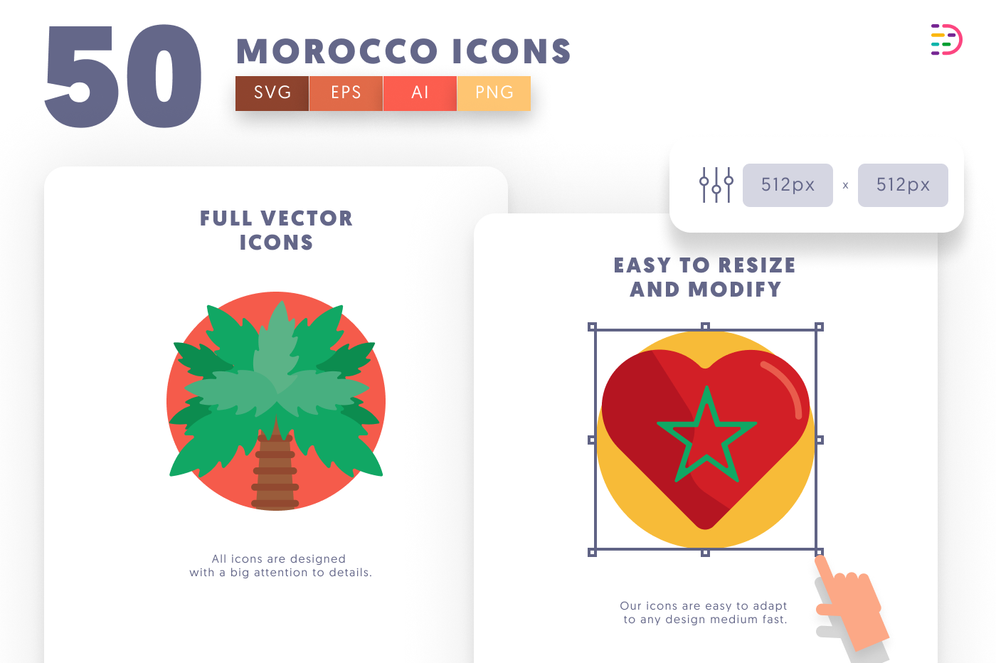 – 512 x 512 px icons easy to resize and adapt to your designs